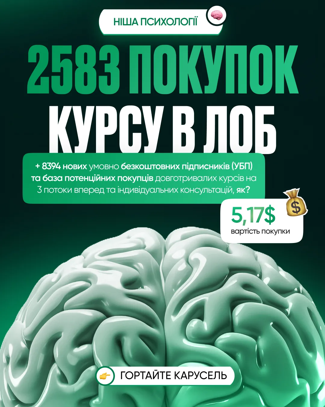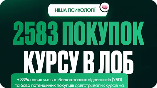 Кейс з ніші психології: як ми отримали 2583 продажі та базу підписників для довгострокових продажів Подивитися кейс