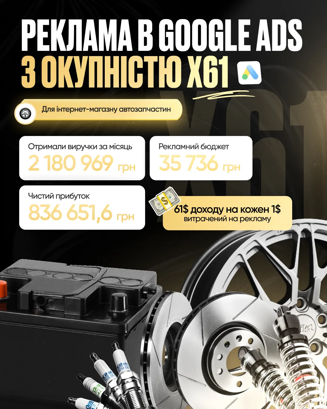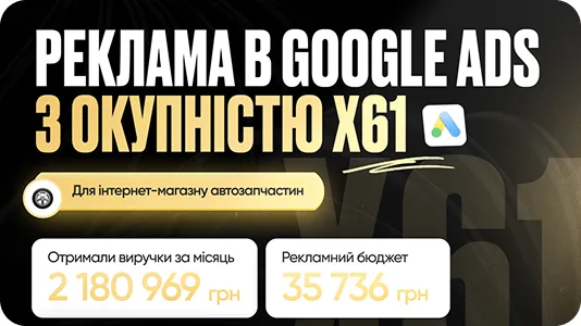 Google Ads із х61 окупністю: як клієнт отримав 836 тис. грн прибутку з бюджету 35 тис. грн — кейс e-commerce Подивитися кейс