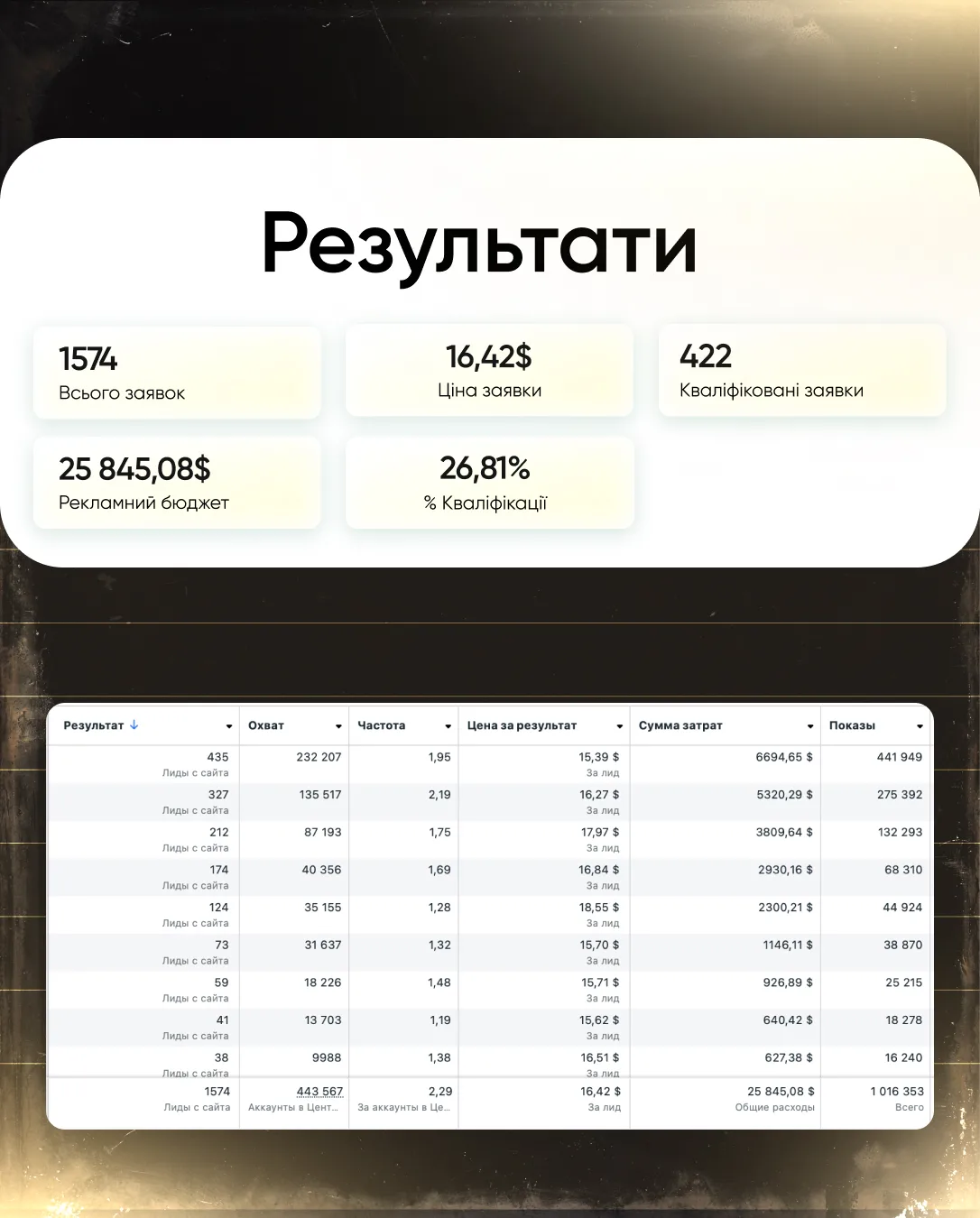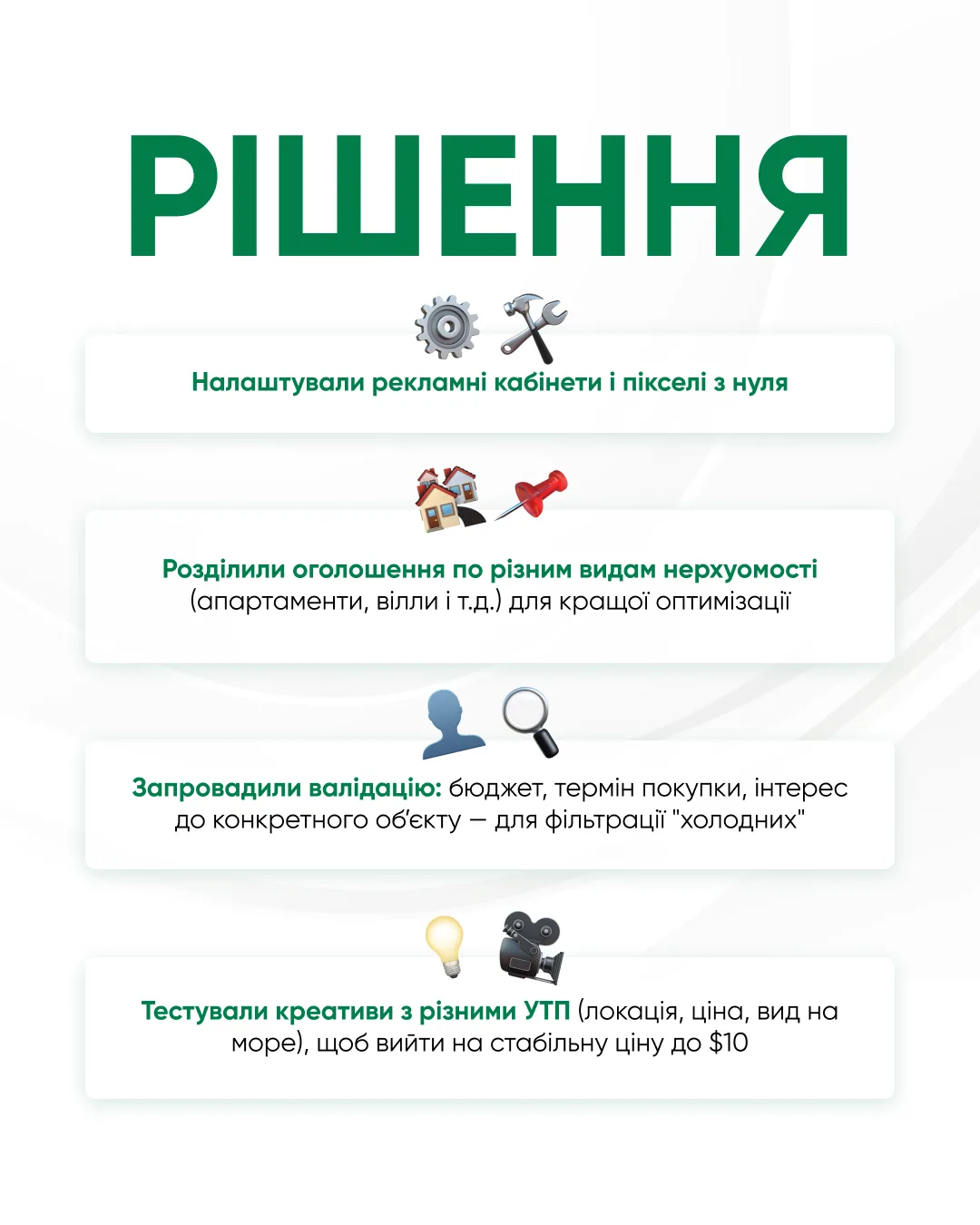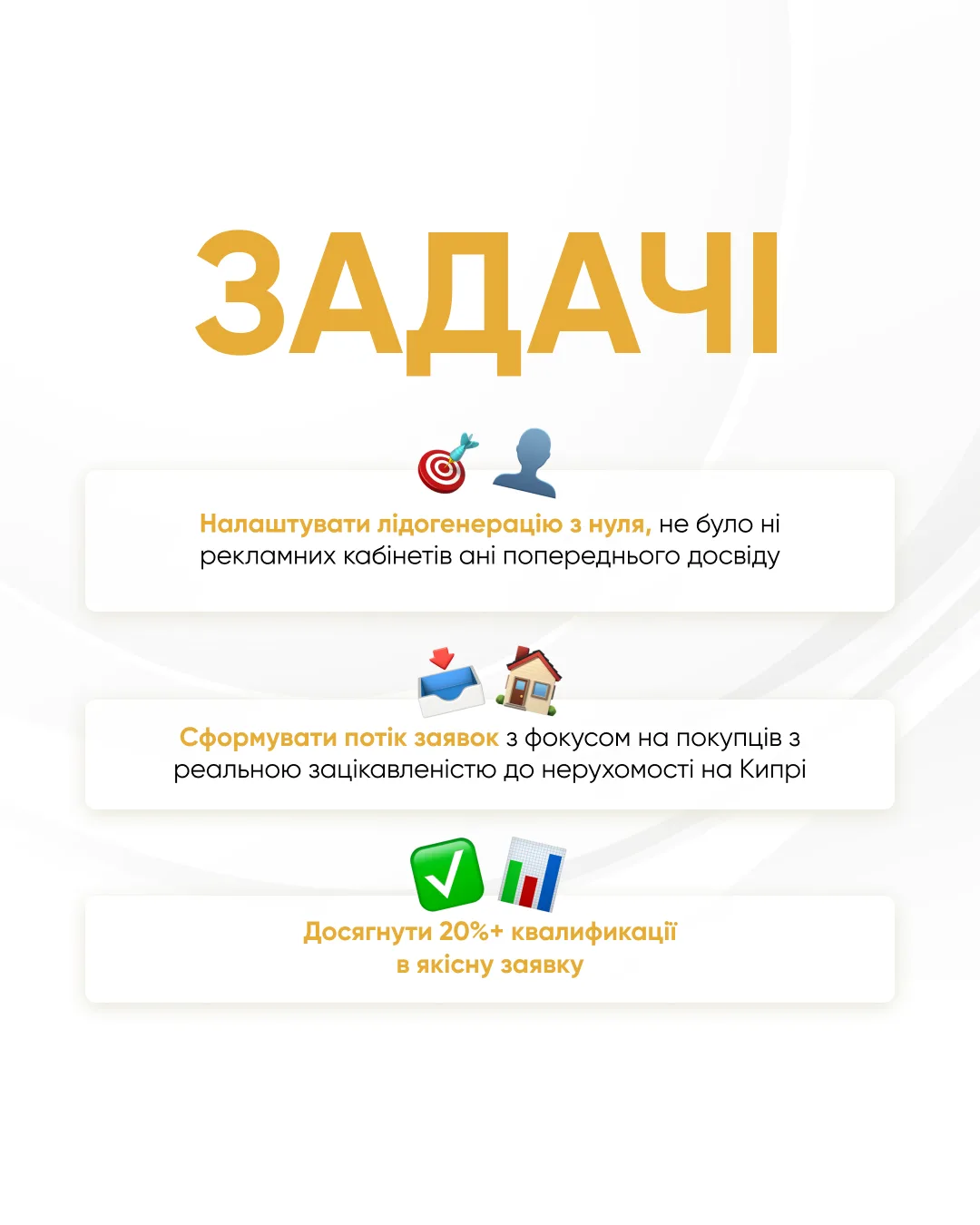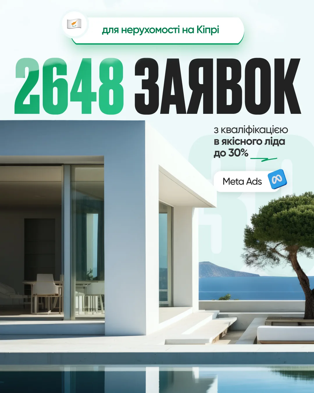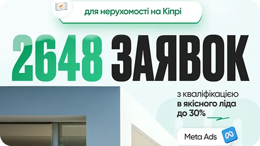 Продаж нерухомості на Кіпрі через Meta Ads — кейс із заявками по $9,81 і якісними лідами до 30% Подивитися кейс