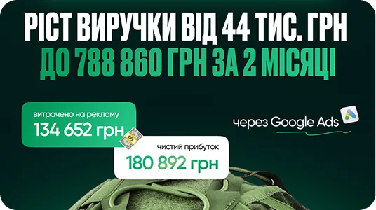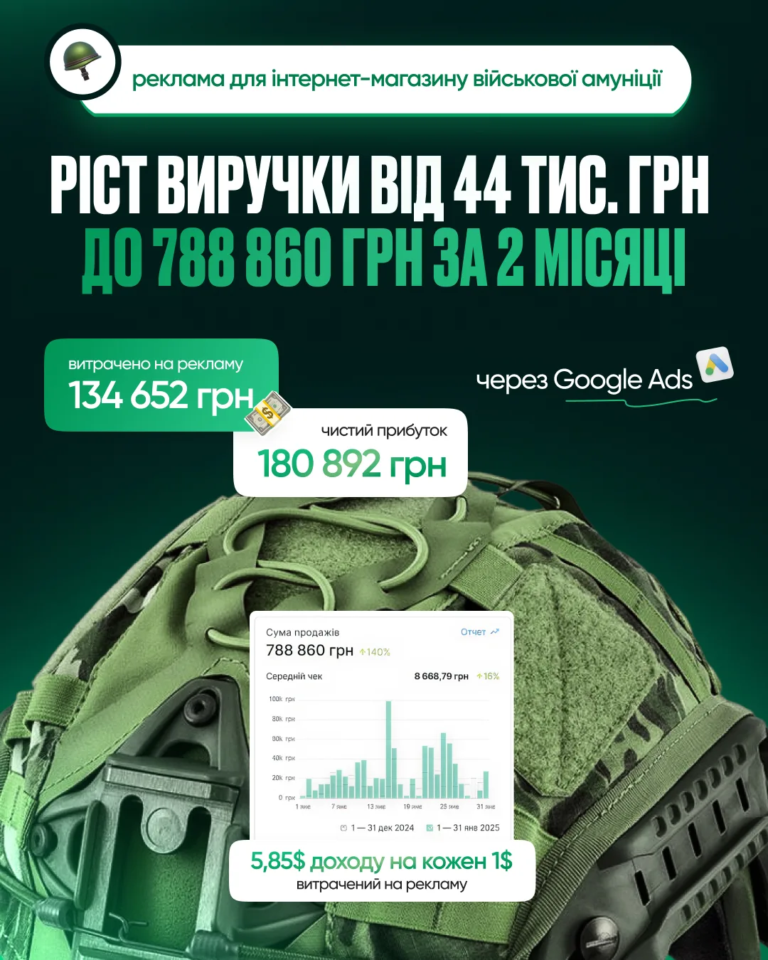 Як ми збільшили виручку магазину амуніції з 44 тис. до 788 тис. грн за 60 днів через рекламу в Google Ads Подивитися кейс
