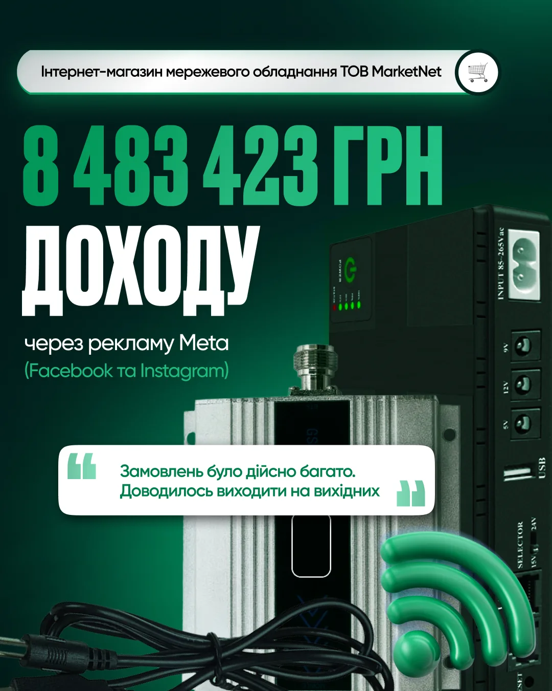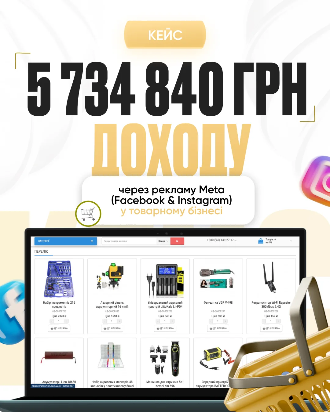 Як ми продали техніку на мільйони через Meta Ads — розбір кейсу e-com з окупністю $1 → $5 до вкладень у рекламу Подивитися кейс