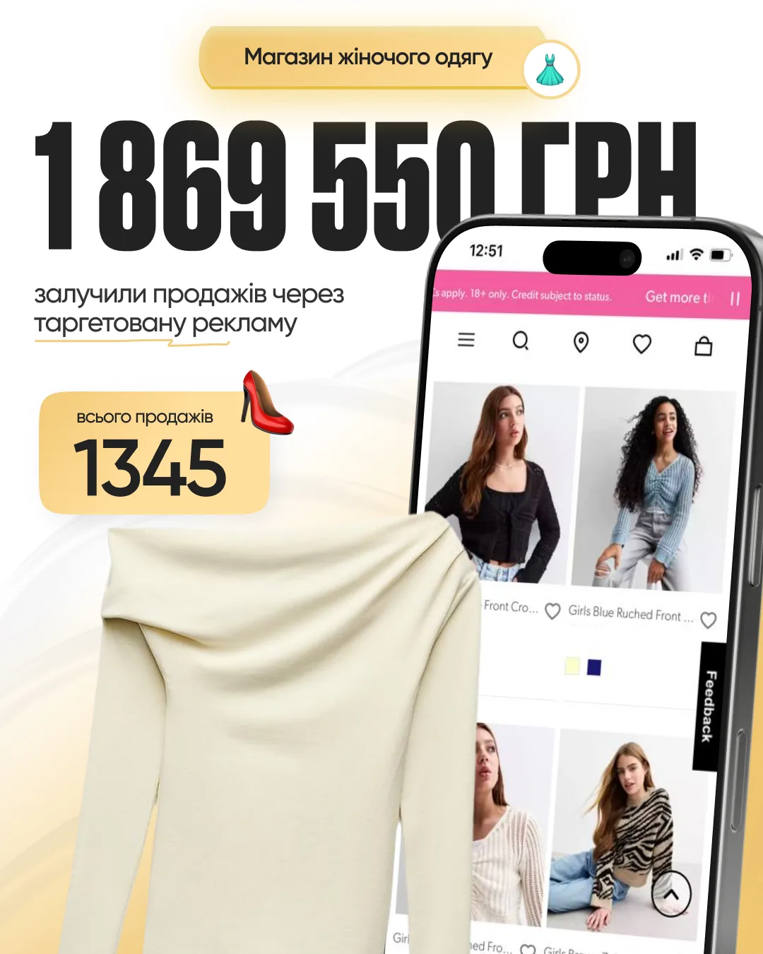 Як ми отримали 1345 продажів жіночого одягу з окупністю 7,4x — кейс з прибутком 1,8 млн грн через рекламу Подивитися кейс