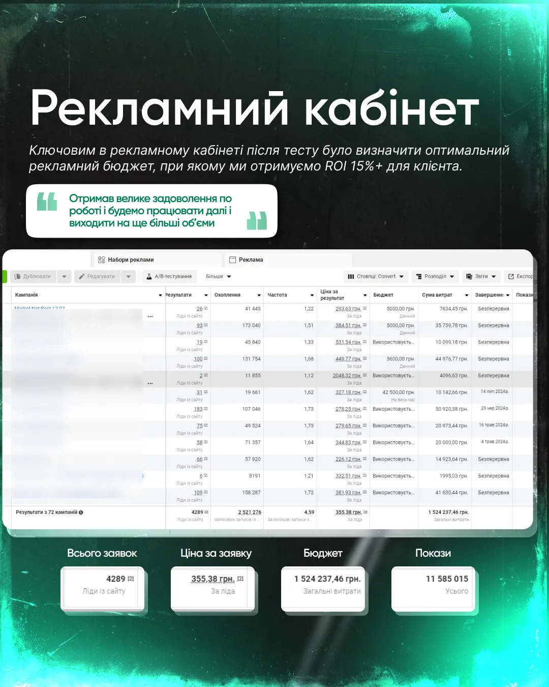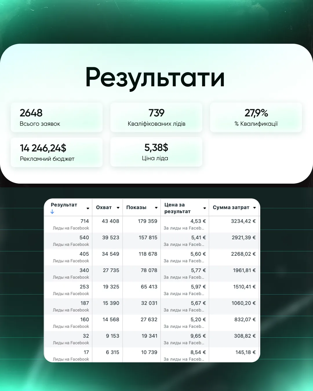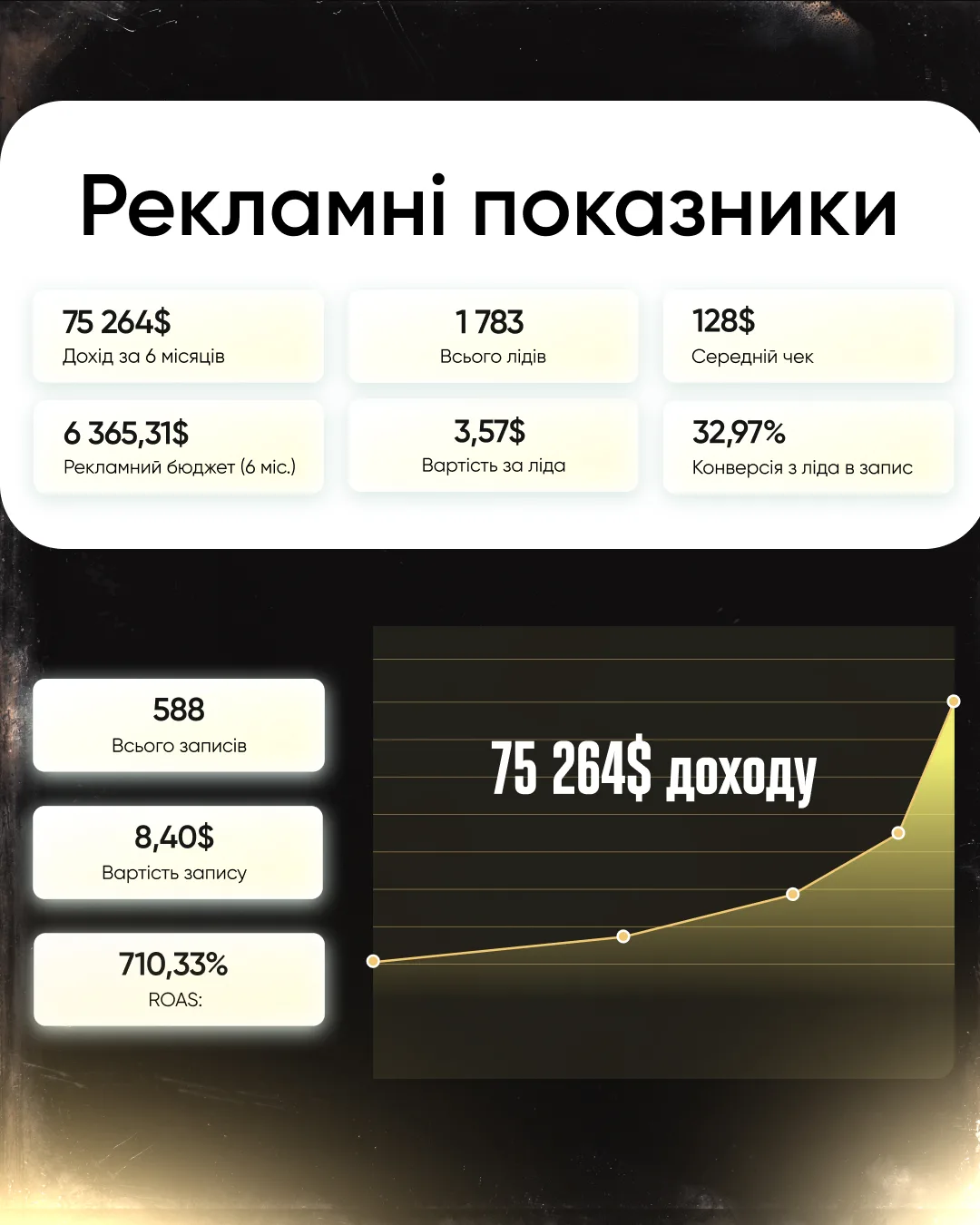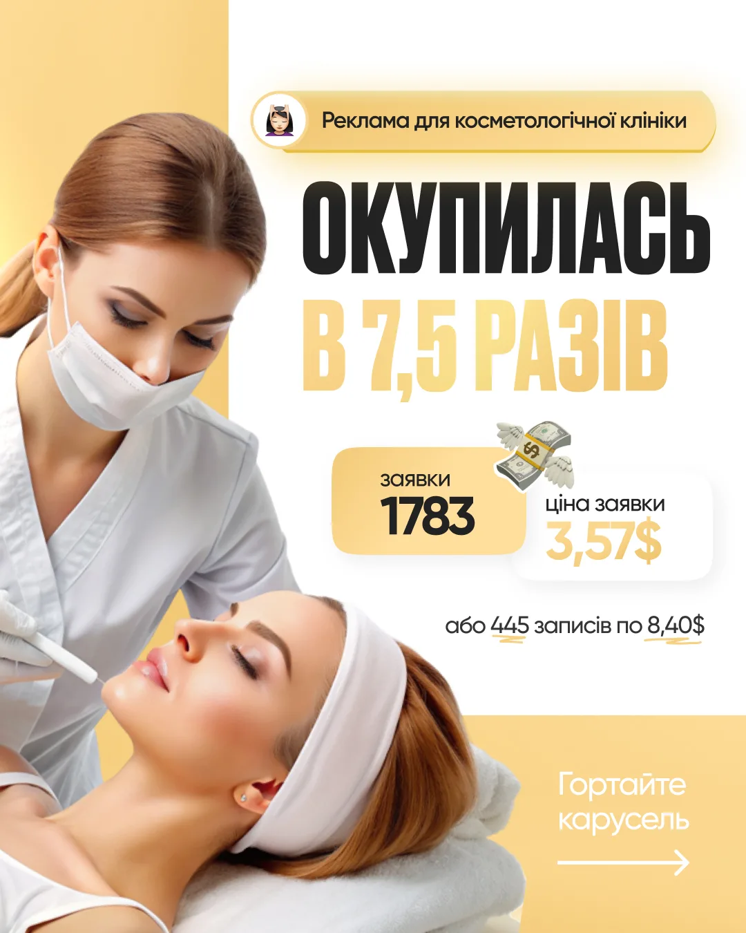 1783 заявки по $3,75 і 7,5x окупність — кейс косметології, де реклама принесла понад $75 000 доходу Подивитися кейс