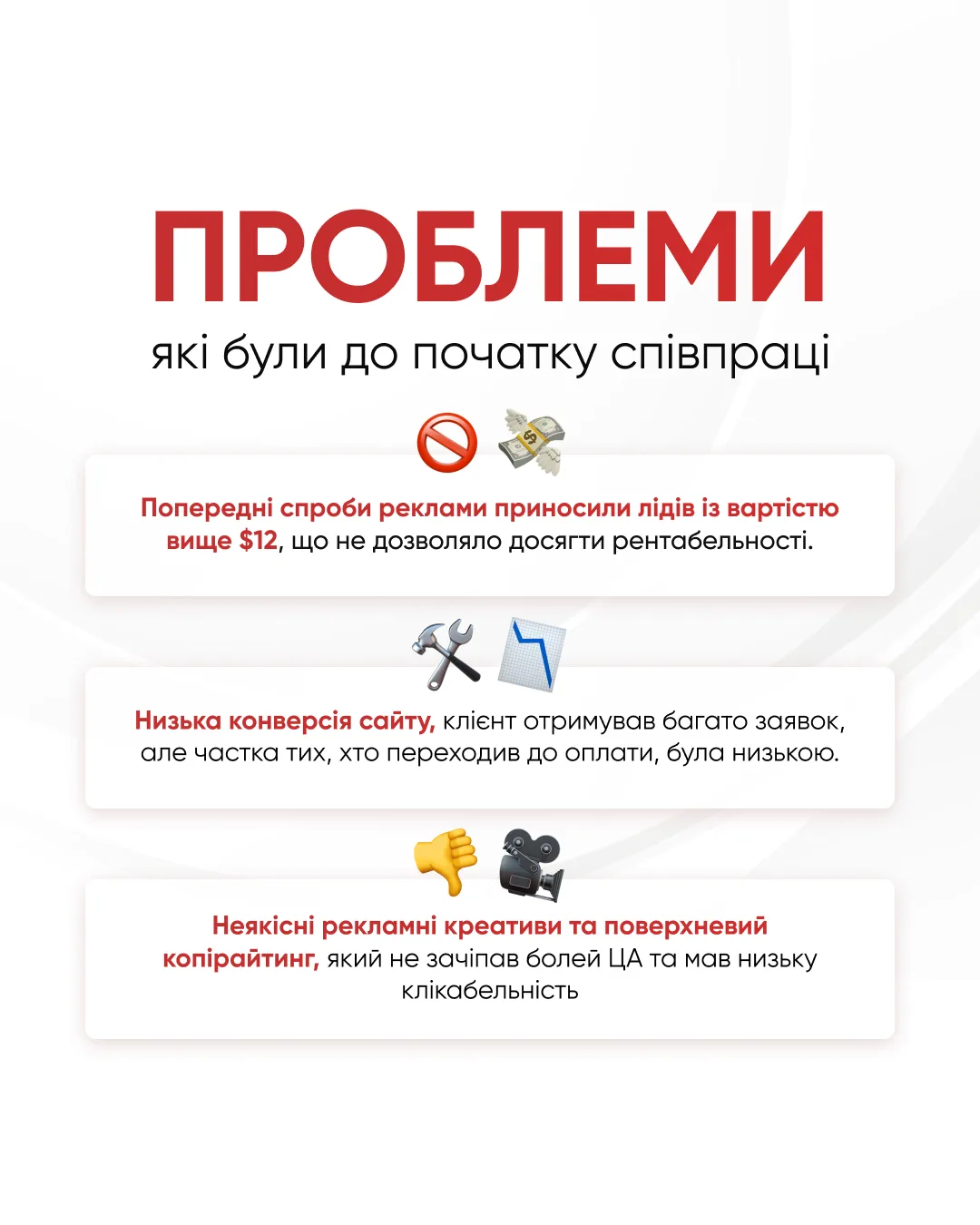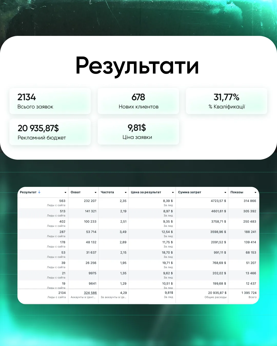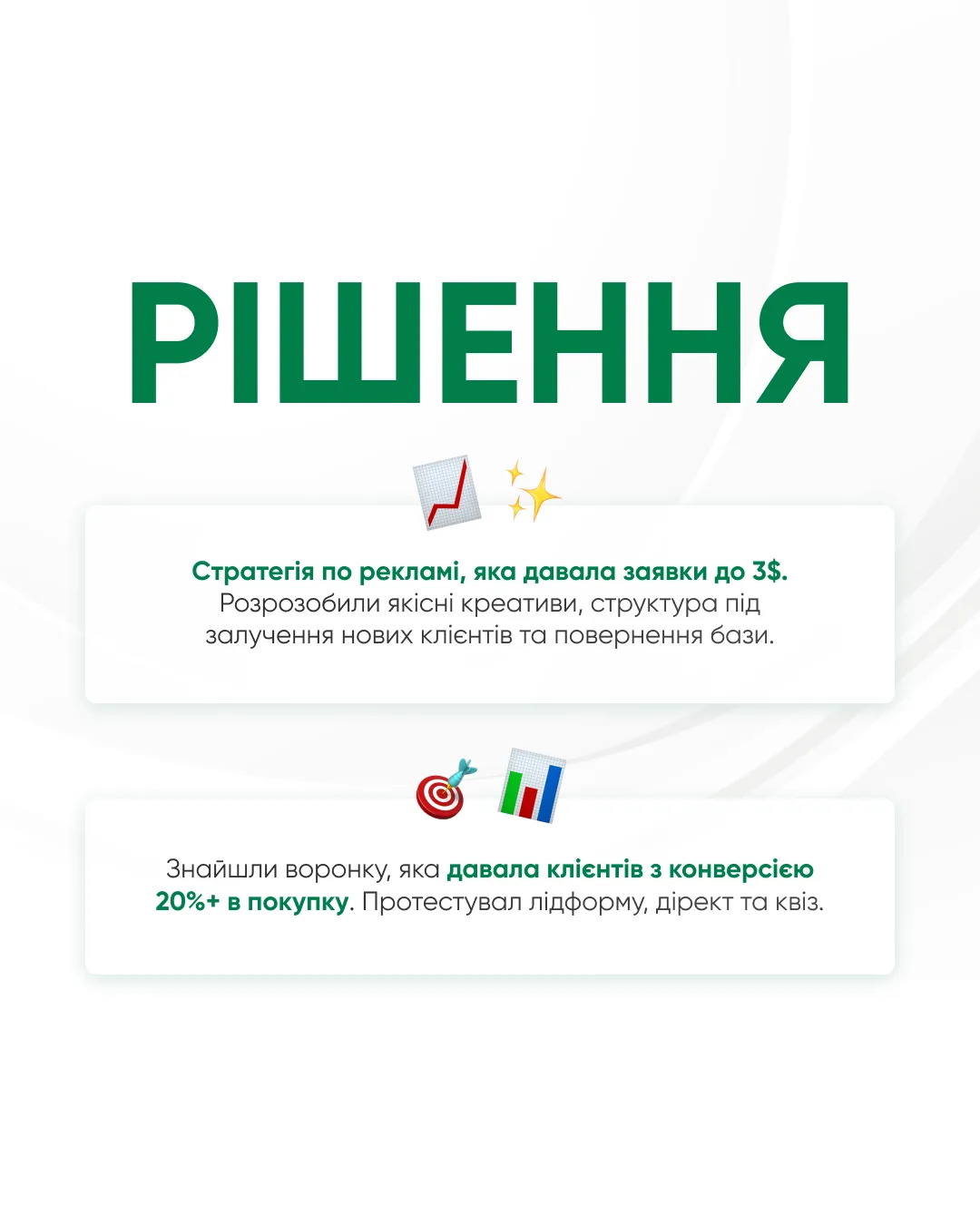Не було лідів, висока вартість заявки. Як ми переламали ситуацію та зібрали 2134 звернення і 678 клієнтів Подивитися кейс